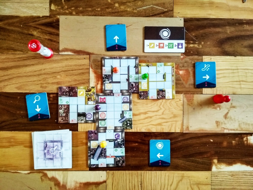 Para lograrlo, al inicio del juego se reparten al azar unas losetas que indican las acciones que pueden tomar durante la partida. La mayoría tendrán flechas indicando hacia dónde puedes mover los personajes (norte, sur, este u oeste, tomando como referencia la loseta inicial) pero algunos tendrán también algunas acciones especiales.
