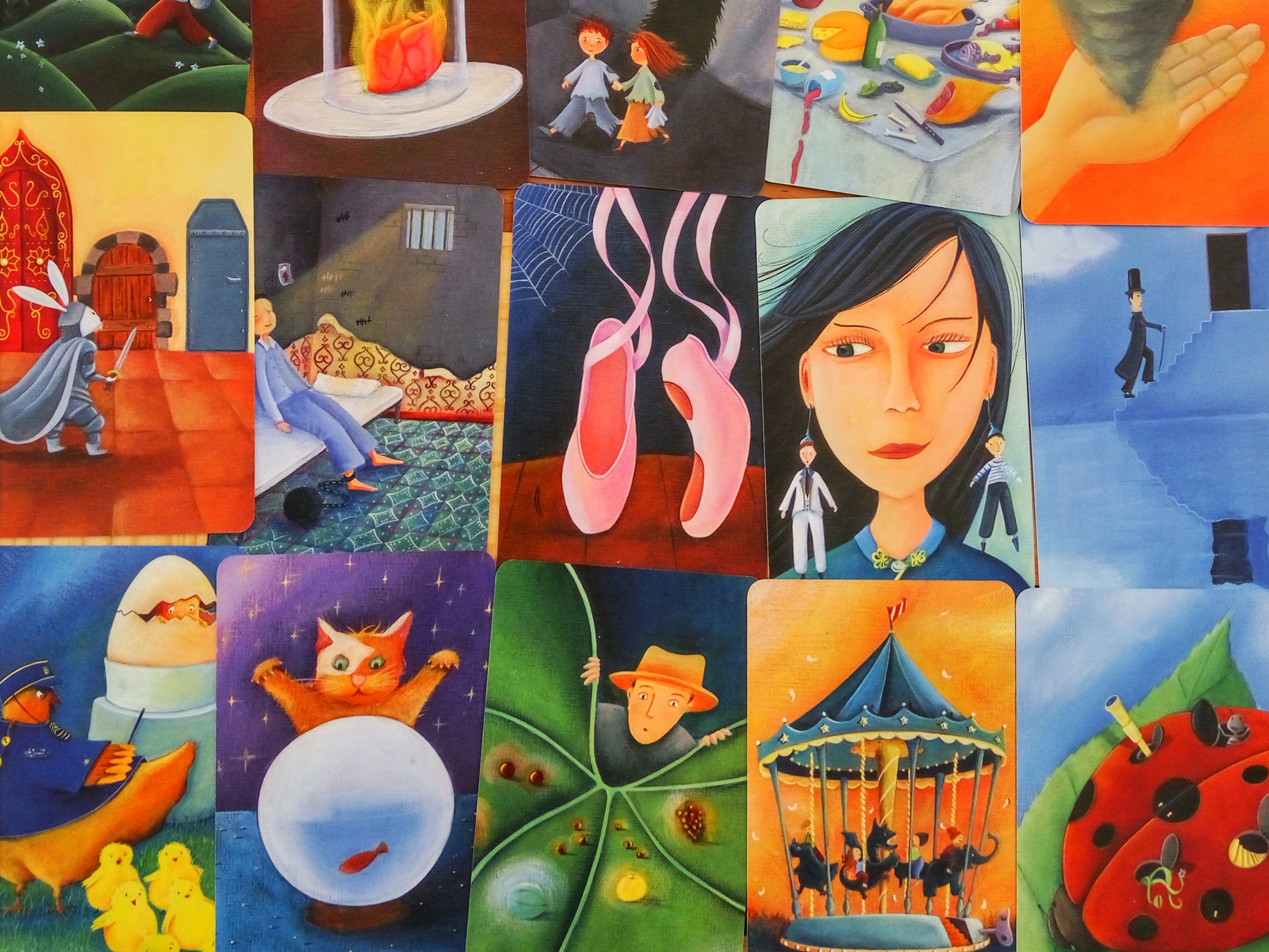 Por si no lo han notado, Dixit es hermoso. El juego consta de 82 cartas bellamente ilustradas con imágenes oníricas y muchas veces contradictorias que ponen la imaginación a viajar.